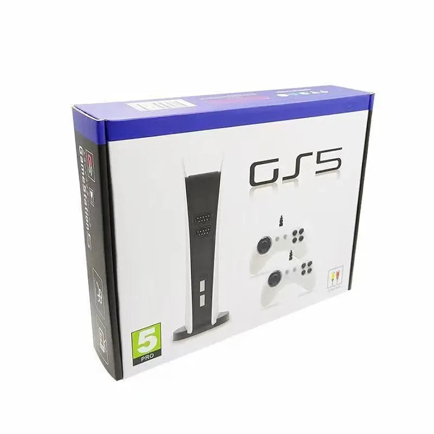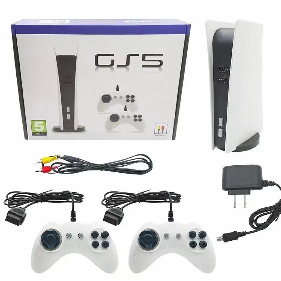 جهاز Game Station 5 (GS5) هو جهاز ألعاب عائلي ترفيهي بتصميم عصري يشبه جهاز الـPS5 الشهير، يحتوي على مئات الألعاب الكلاسيكية القديمة مثل ألعاب ماريو، كونترا، تانك، سباق السيارات وغيرها.يمكن توصيله مباشرة بالتلفاز عن طريق أسلاك AV (الصفراء/البيضاء/الحمراء) بدون الحاجة إلى تحميل أو إعدادات معقدة.يأتي الجهاز مع يدَي تحكم ليلعب شخصان في نفس الوقت، مما يجعله مثاليًا للعب العائلي الممتع.