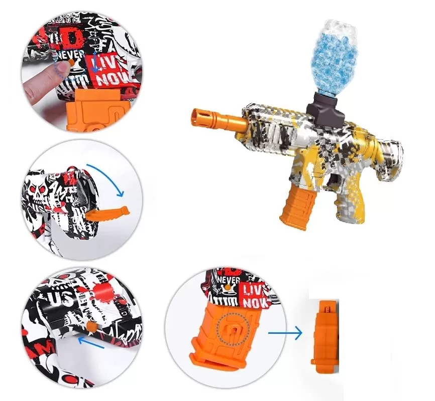 "يعمل على إطلاق كرات جل ناعمة لا تسبب الضرر، مما يجعله آمنًا للاستخدام."