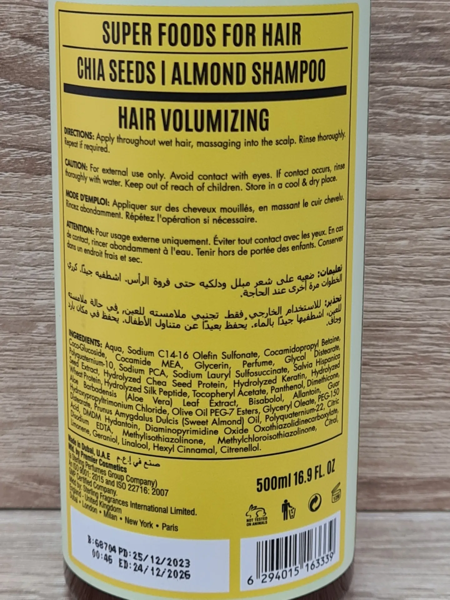 - يحتوي على مستخلص بذور الشيا الغنية بالأوميغا 3 لتقوية الشعر.